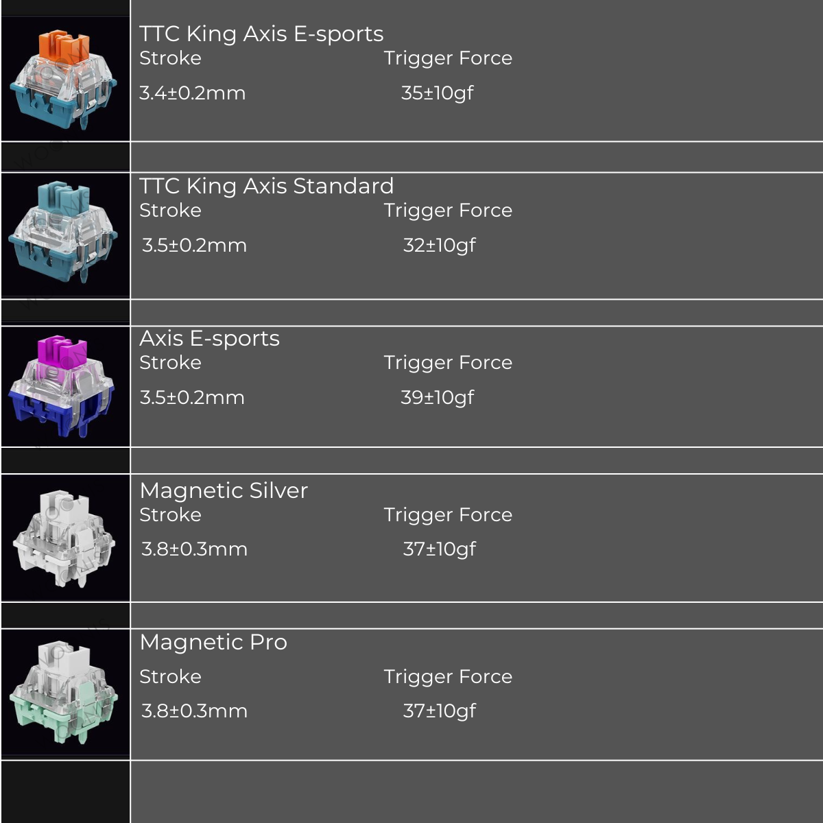 | Magnetic Switch | Pro - Silver | Axis E-sports - TTC King Axis Standard - TTC King Axis E-sports |