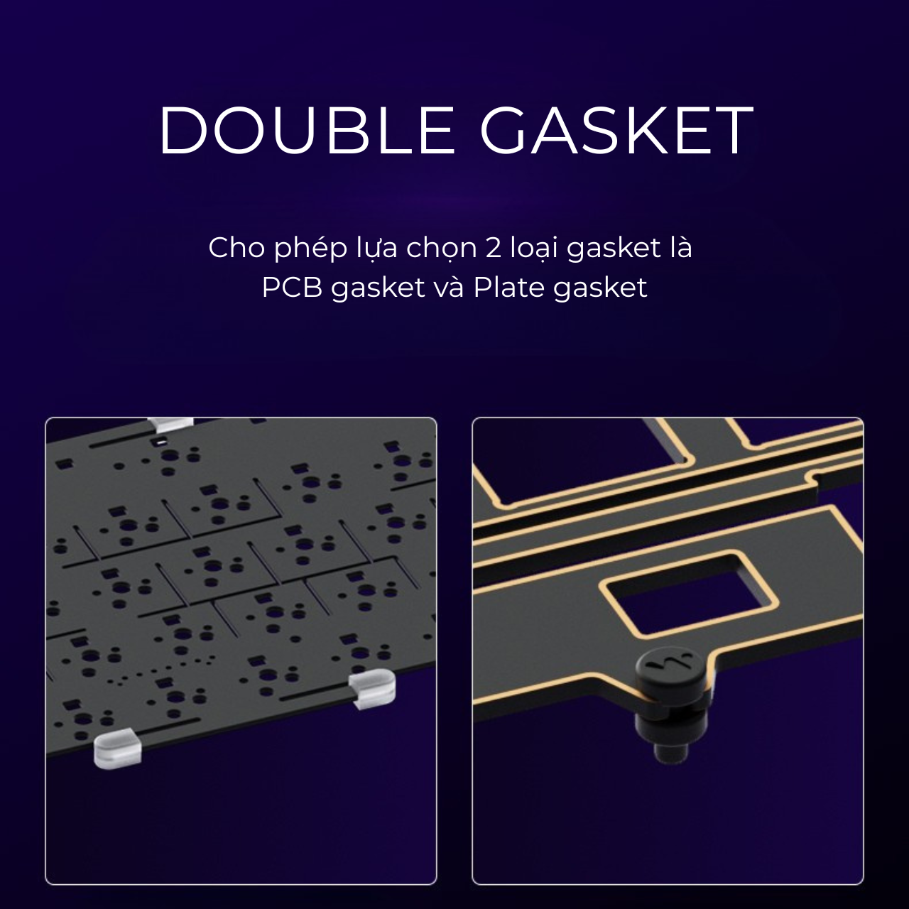 Gasket Mount 2 kiểu: Mang lại khả năng tuỳ biến đa dạng và trải nghiệm gõ phím êm ái, giảm tiếng ồn và rung lắc.