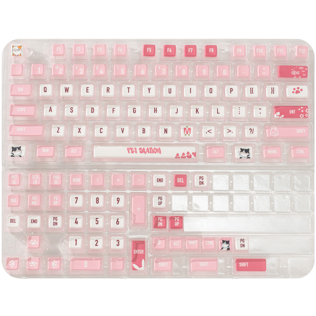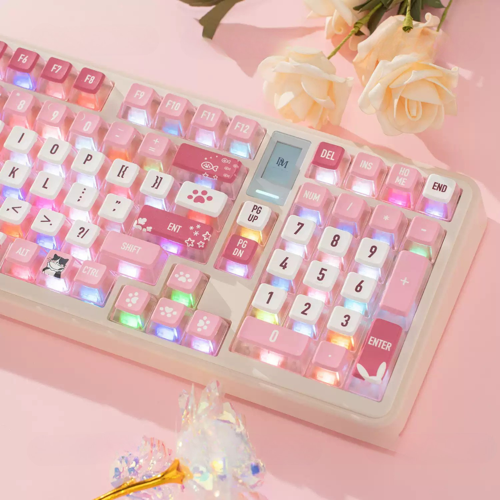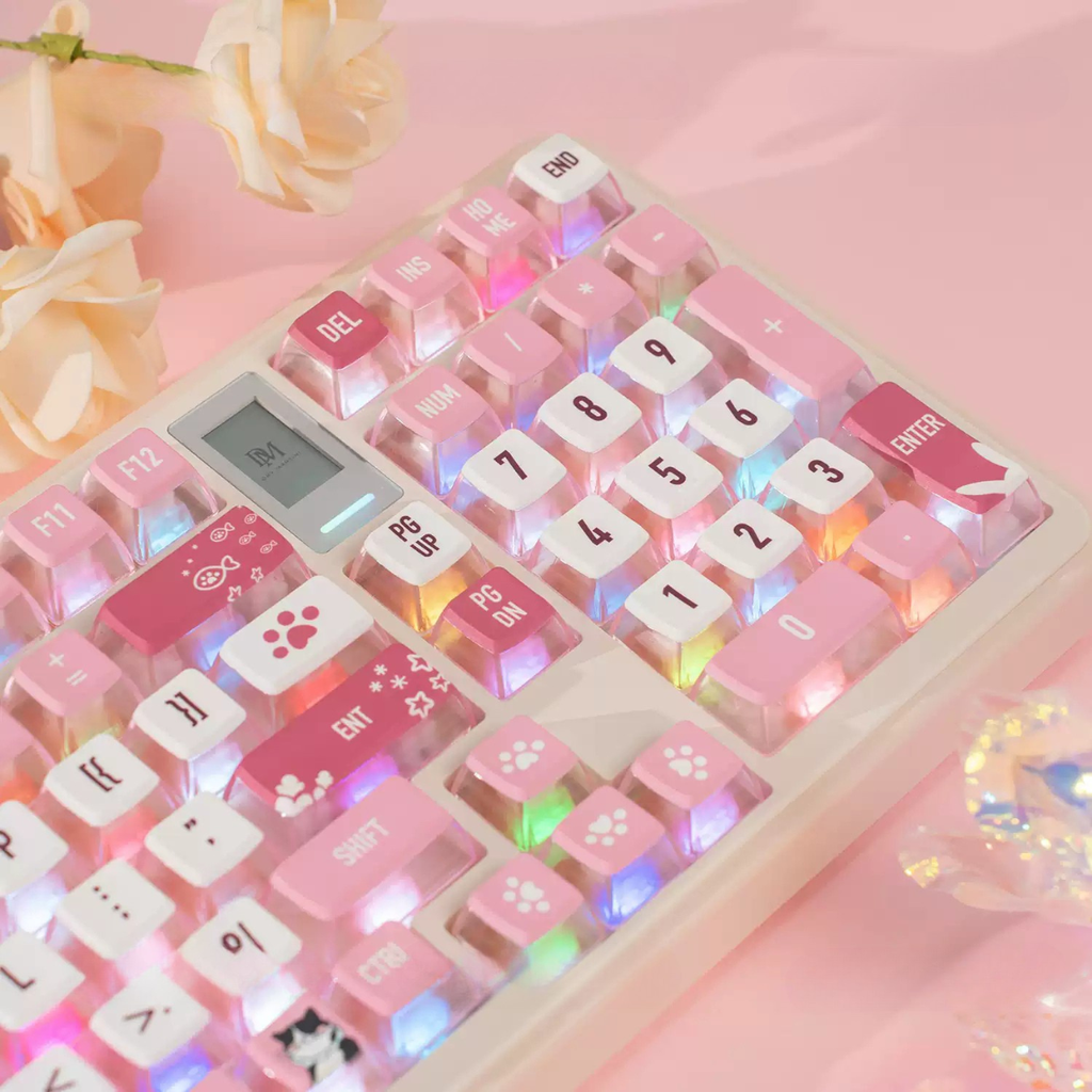 Keycap MDA Cat Pink – Bộ keycap PBT xuyên LED hồng mèo dễ thương